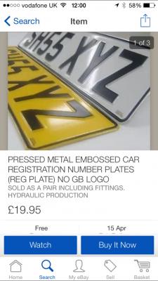 RE: Number plates - Jj0063 - 13:th-Apr-2015 http://www.ebay.co.uk/itm/Pair-Metal-Aluminium-Number-Plates-Pressed-100-Road-Legal-Free-Fitting-Kit-/251663535494?pt=LH_DefaultDomain_3&hash=item3a9850cd86 Doesn't get much cheaper than that! Especially for pressed. Number plates - dutton84 - 13:th-Apr-2015 Right I've decided on this tape http://pages.ebay.com/link/?nav=item.view&alt=web&id=181386565440 Was going to get the tape on Amazon but it came to £8 with postage. I'll let you know what this is like. A lot of people say no more nails tape is good too. But was worried about it being to thin. Just like normal tape ie not foam tape. Sent from my iPhone using Tapatalk RE: Number plates - tucpal - 14:th-Apr-2015 that should work Number plates - sheppy1 - 14:th-Apr-2015 Yeah looks good enough to me! i forgot that not everyone has amazon prime, only £5 with next day delivery for the one I linked too for me. Sure you'll see the same results though and looking forward to seeing how you get on