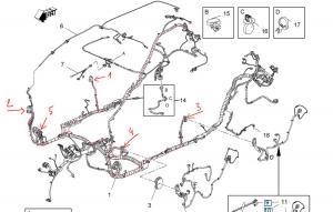 I worked on my cable loom and managed to clean it from the complete interioir loom (the one I picked up on a crashed GTC), thanks to the schemes here. Most of the wire's colors are different for a GTC but it was helpfull regarding pin's numbers on connectors.