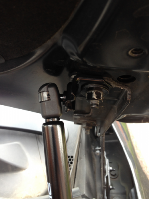 I also added a washer on the balls stud to add a little strength to the bracket and tightened it all from underneath with an M6 nut. Struts are 393mm and 180nm and are sold as single so 2 need to be ordered.