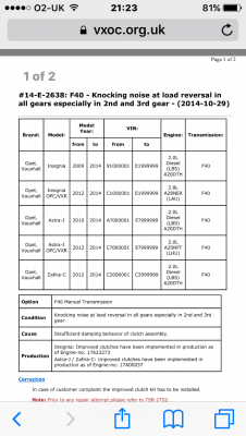 (8:th-Jan-2021, 23:25:40)14PGTC Wrote: Mine knocks in second and third gear, not so much in other gears. Also, if I was to accelerate and let off and put the clutch in, the whole car would shake. When you speak to them tell them you have a bulletin number. As to weather it would still be covered is something you would have to argue about with the dealership/ vauxhall. Be warned they are very good at wriggling out of things. Astra-J 2.0 CDTI S/S
