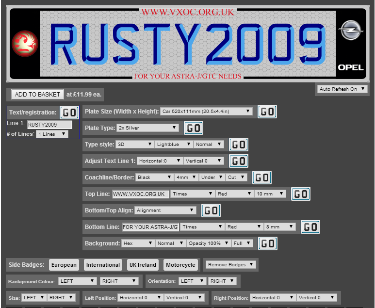 So these are the plates the users have chosen, they will roughly be £14 a pair. Please add your name to the list exactly as you want it writing.